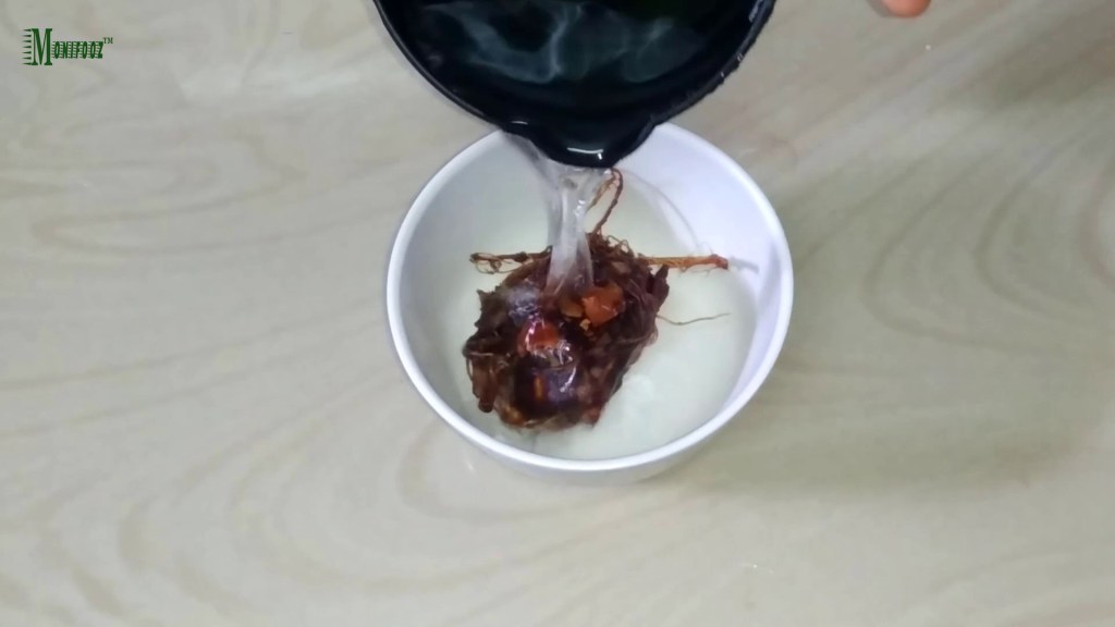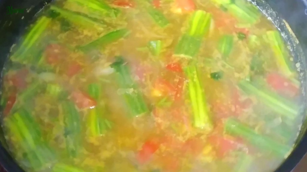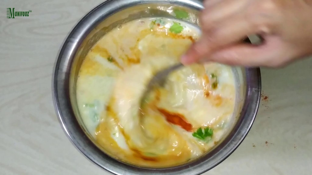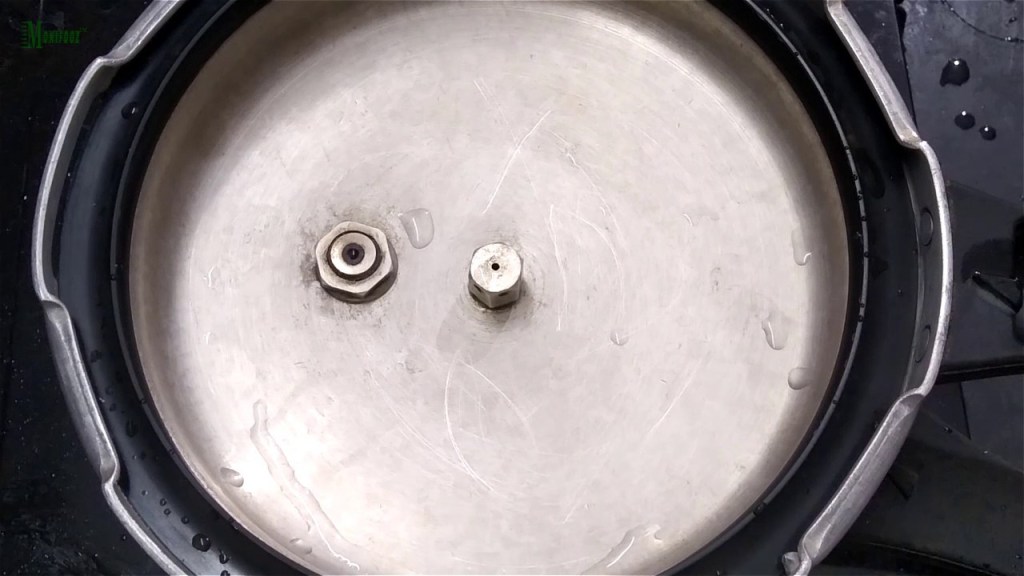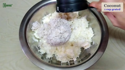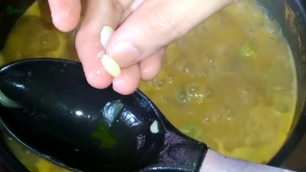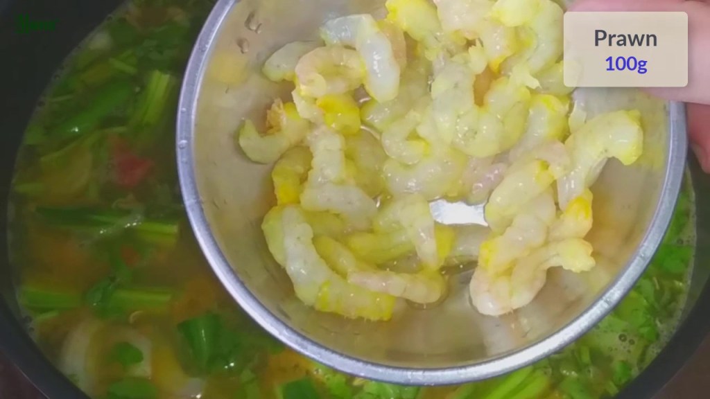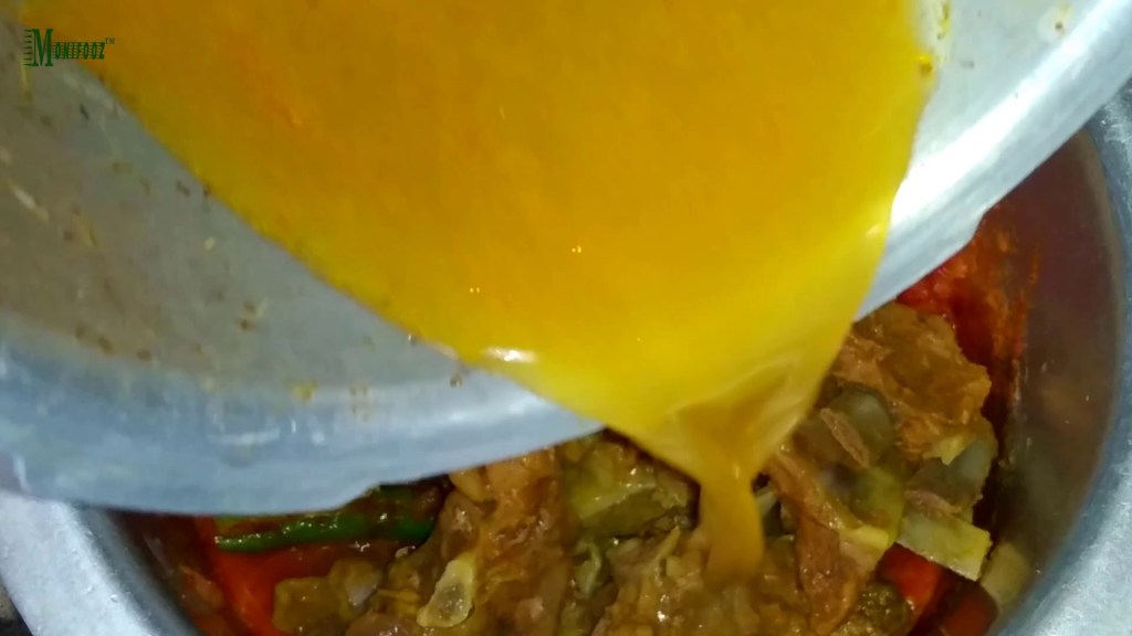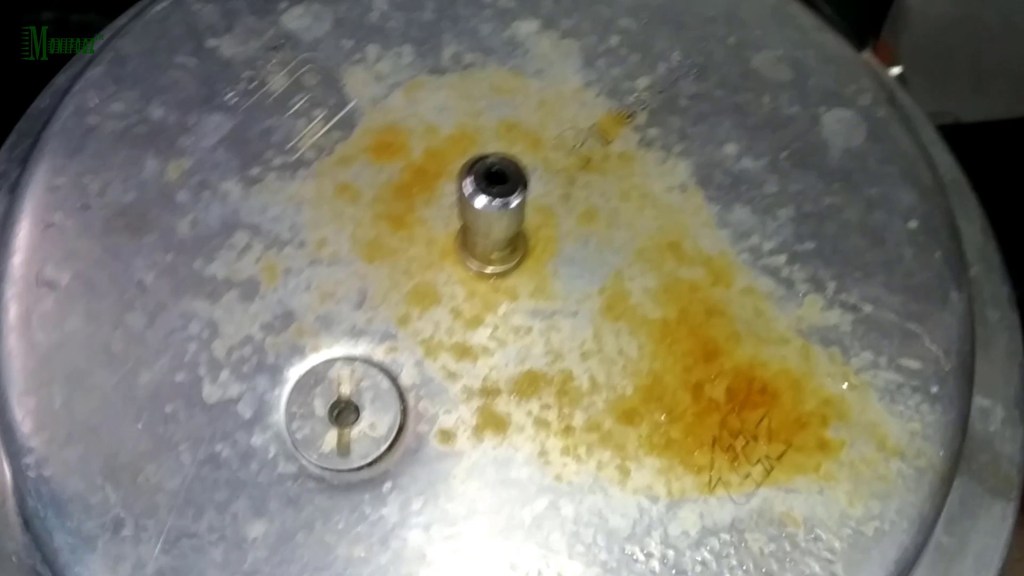 Add the dissolved coconut milk once it starts boiling. Close the lid, but not entirely, to avoid overflow. Wait for 10-15 minutes. Sprinkle some water over the sides once the Oil separates. Reduce the flame to low heat and wait for 5 minutes.