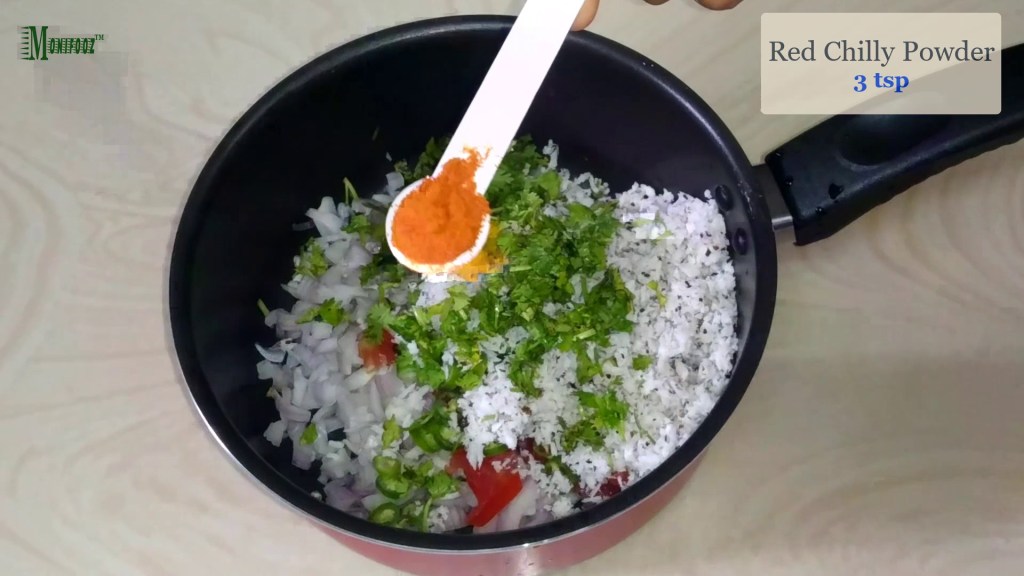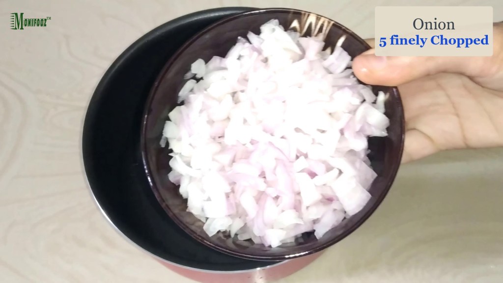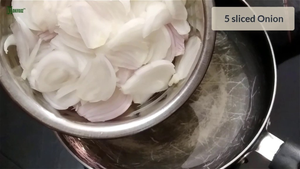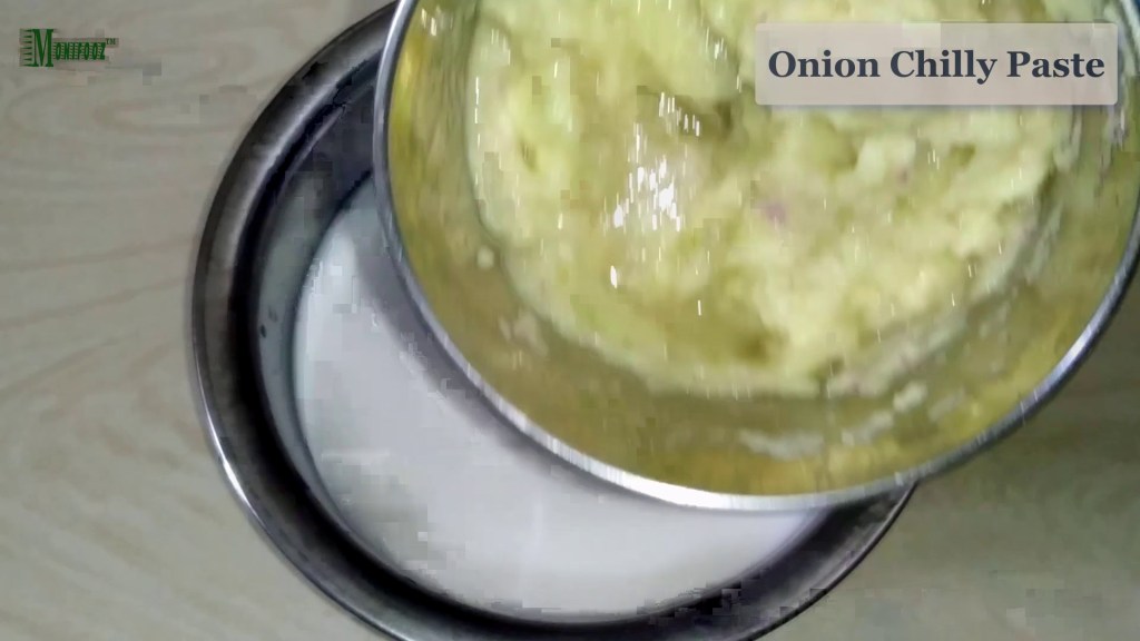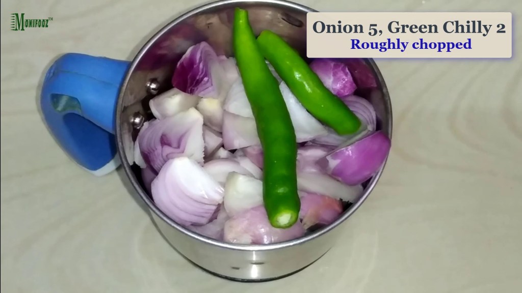 Secondly, grind the five onion and two green chilly as a smooth paste.