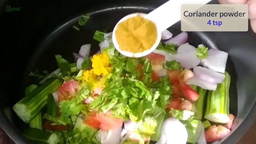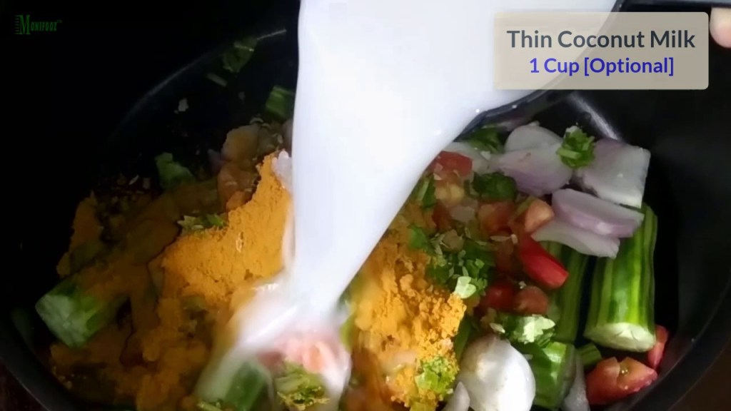 Take two cups of coconut milk and all the ingredients listed in the second and third lists. Exclude Oil, Kashmiri chilly powder, three onions, One green chilly and half tomato, and 2 tsp of ginger garlic paste in the third list. Mix well and dissolve all these with coconut milk.