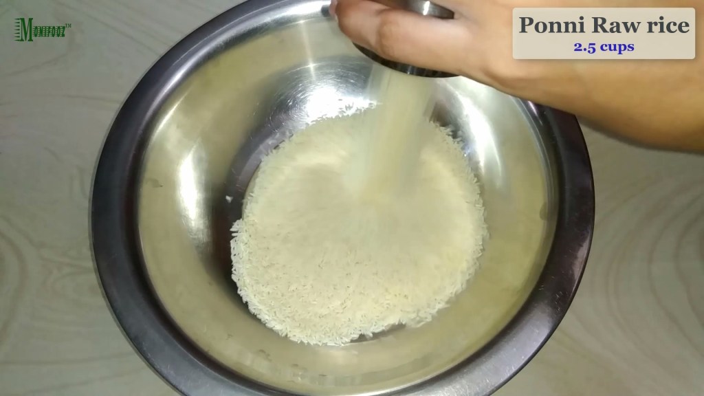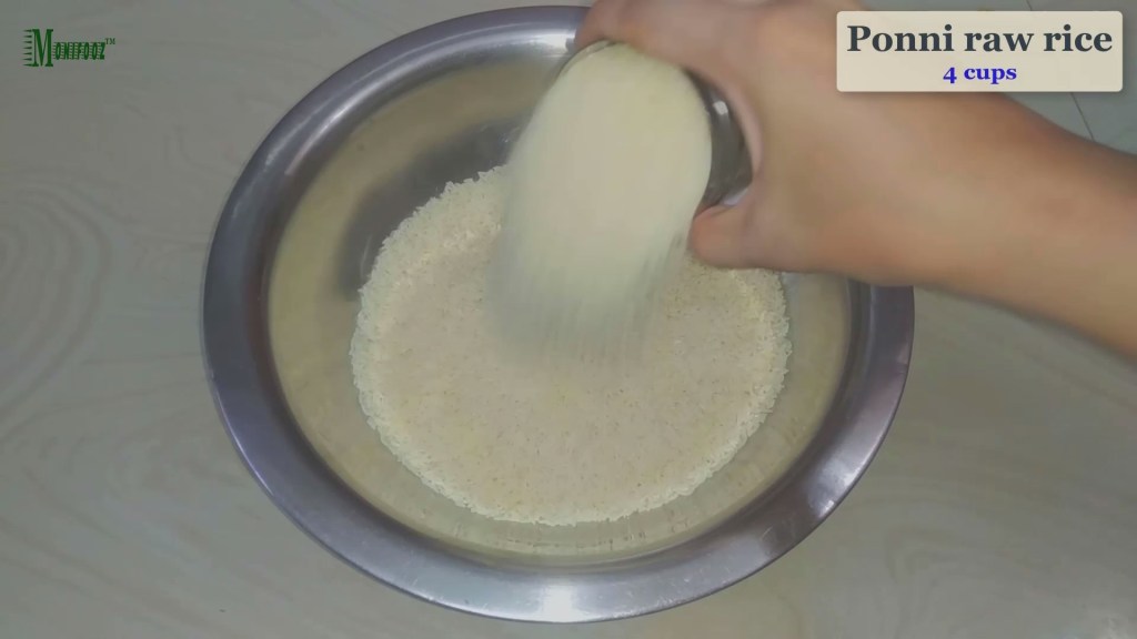 Get 4 cups of Ponni raw rice. Wash it 2 to 3 times and keep it aside.