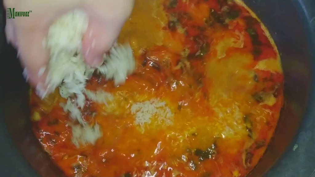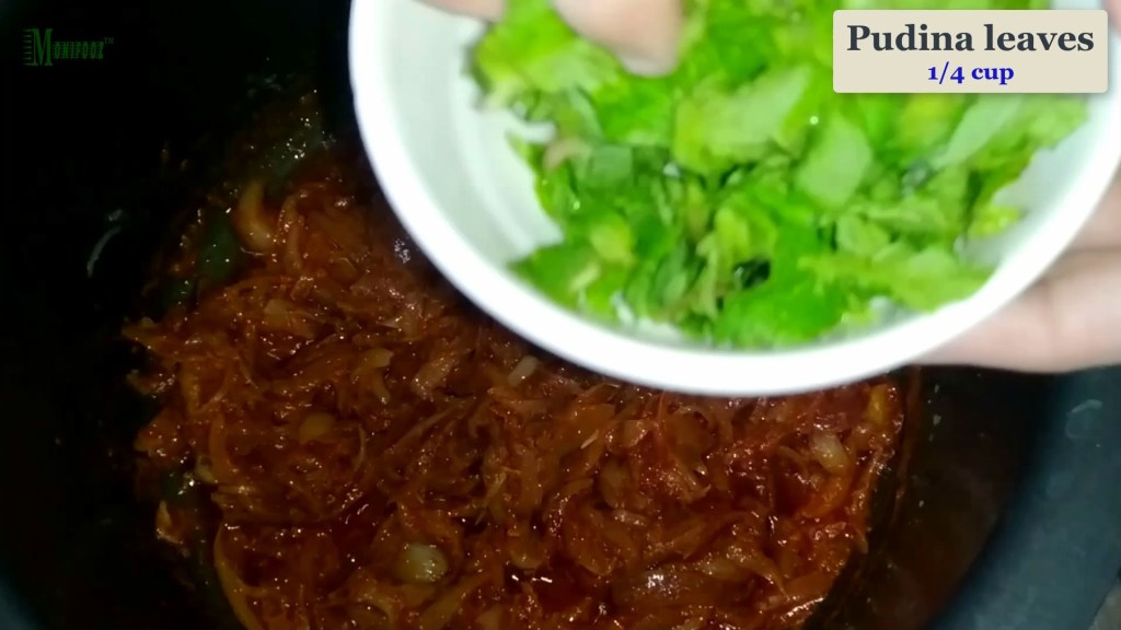 Add 1 cup of Curd/Yogurt and mix it well. Again cover it and cook for 7 to 8 minutes. Add 2 cups of soaked rice water and preferred level of salt. Increase the flame to medium-high heat with closed lid and let it boil. Add the soaked rice once it starts boiling. Now add juice extract of 2 medium-sized lemons, 1/4 cup of pudina and coriander leaves, and stir it well.