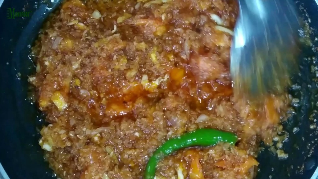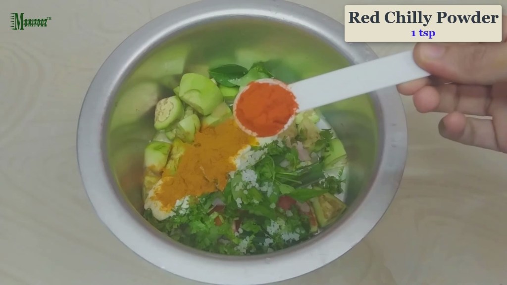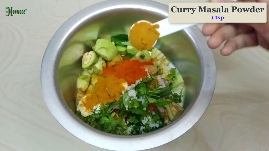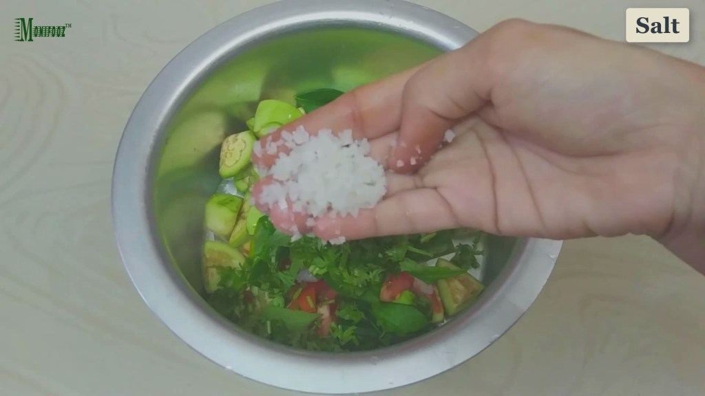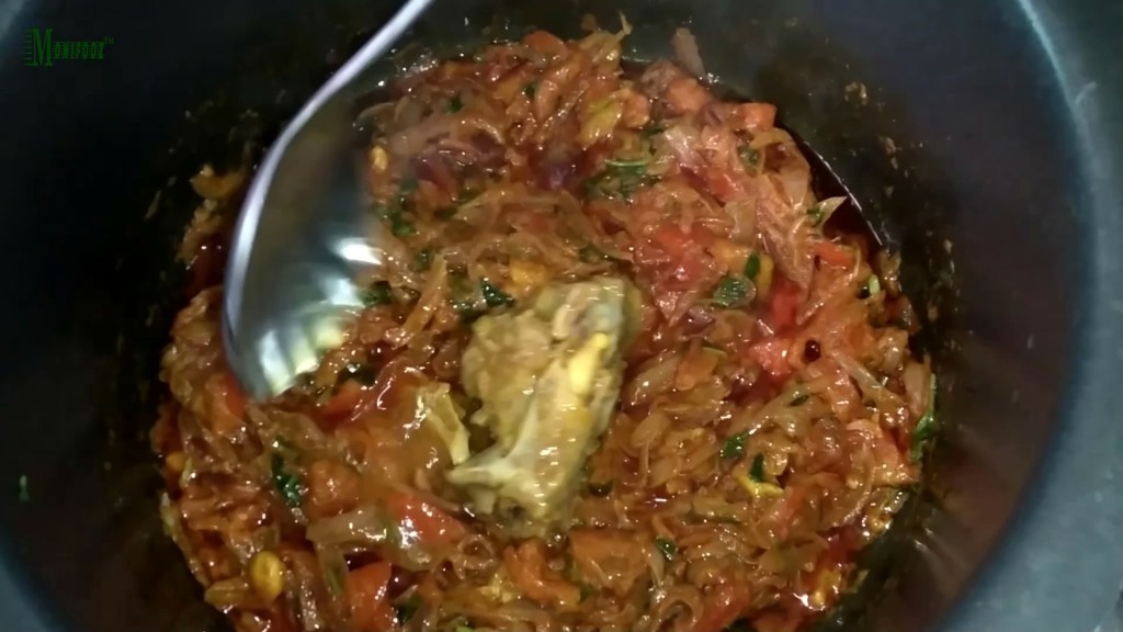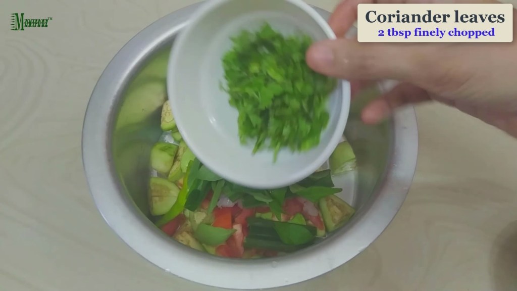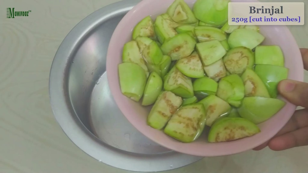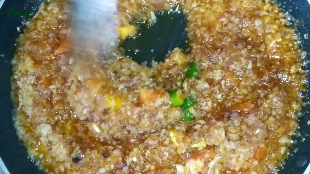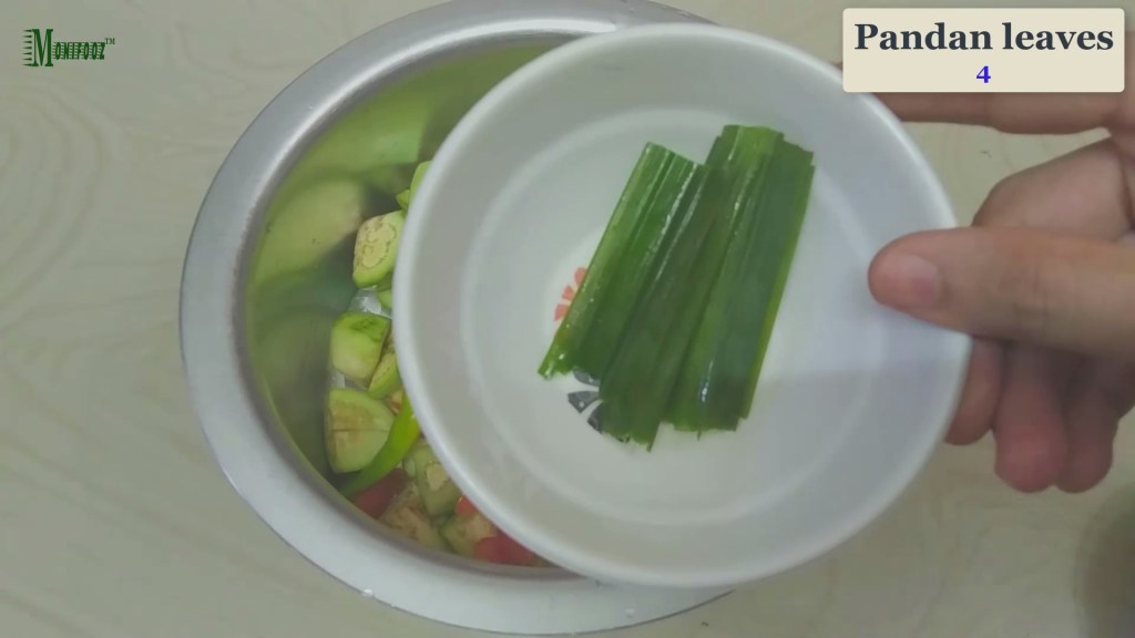 Take a cooking vessel, and you’ve to add all the stuff mentioned in the ingredients list for Dalcha except the last two. That is, add small cube cuts of 250g of brinjal, one chopped tomato, two medium-sized onions grind into a paste, three green chilly with slits on each, four pandan leaves, 10-15 of curry leaves, 2 tbsp of finely chopped coriander leaves, and required salt as per preferred level.