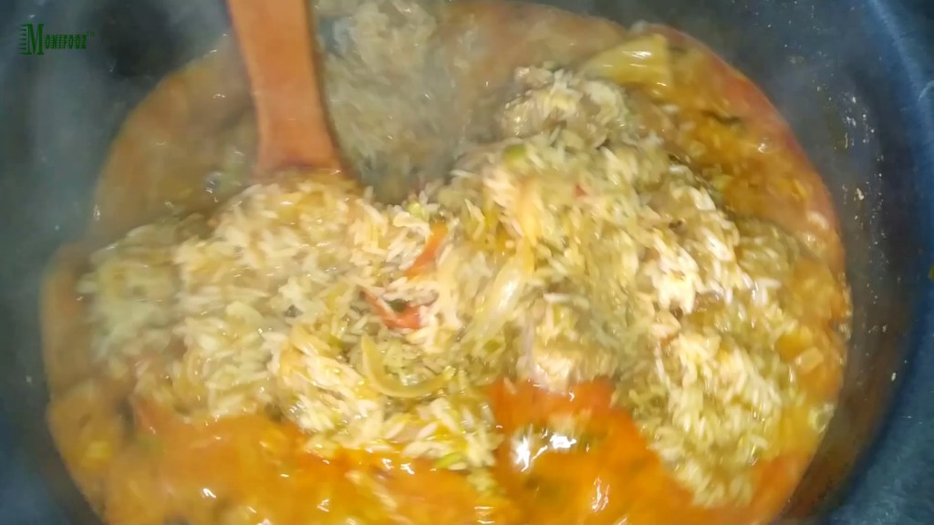 Cover and cook for 10 to 12 minutes until the water drains. Don’t forget to stir it occasionally to avoid burning of rice. Reduce the flame to low heat. Place the biriyani pot over preheated Tawa and place the vessel filled with water on the biriyani pot. Finally, cook for 15 to 20 minutes with low heat, and mutton biriyani will be ready.