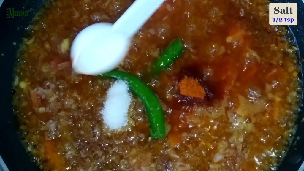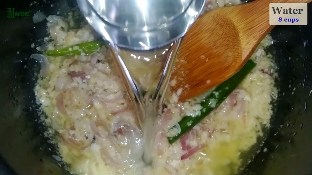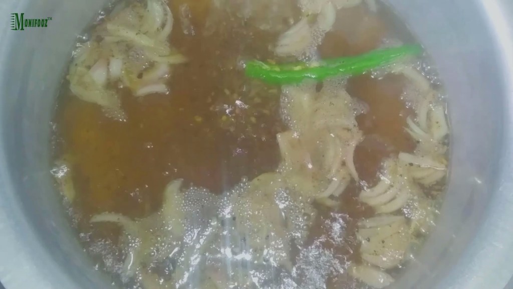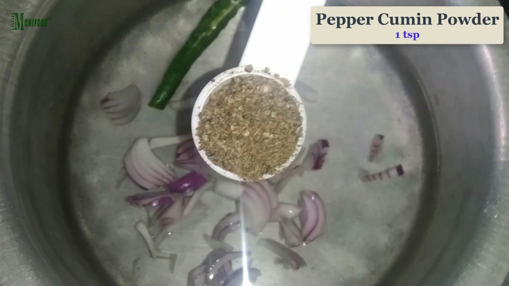 Get ready with a vessel with 3 cups of water. Turn the flame on and keep it at medium-high heat. Add green chilly with slit and one sliced onion. In addition to that, add 1 tsp of pepper cumin powder and a preferred level of salt. Cook the mixture for 5 minutes.