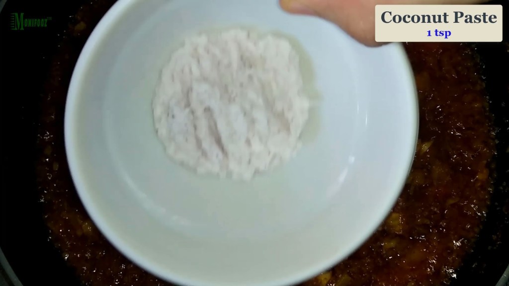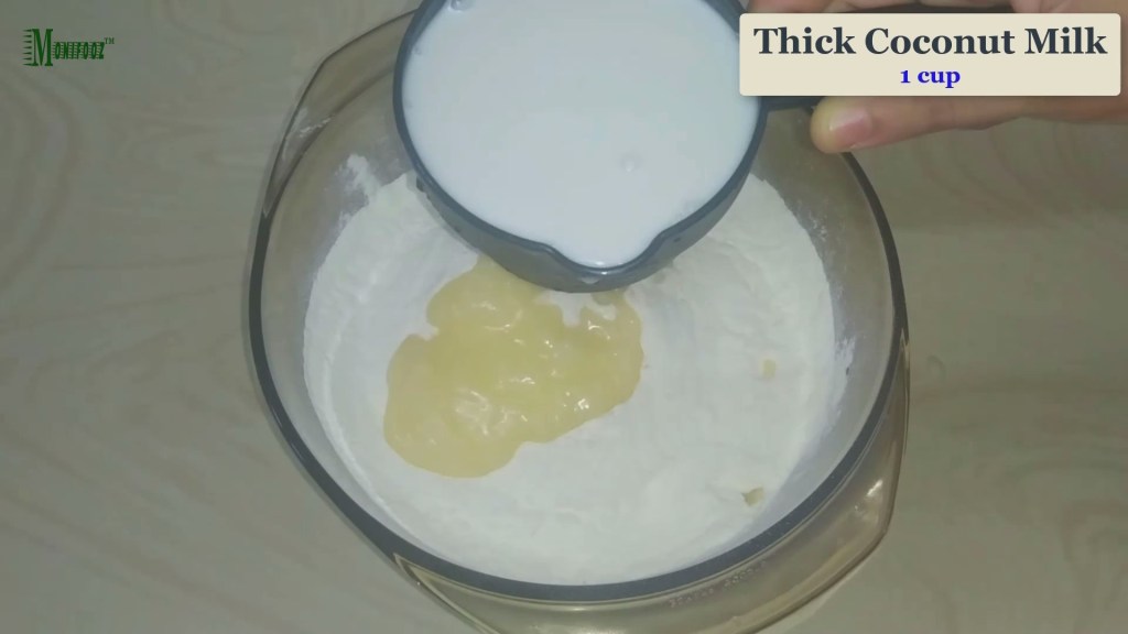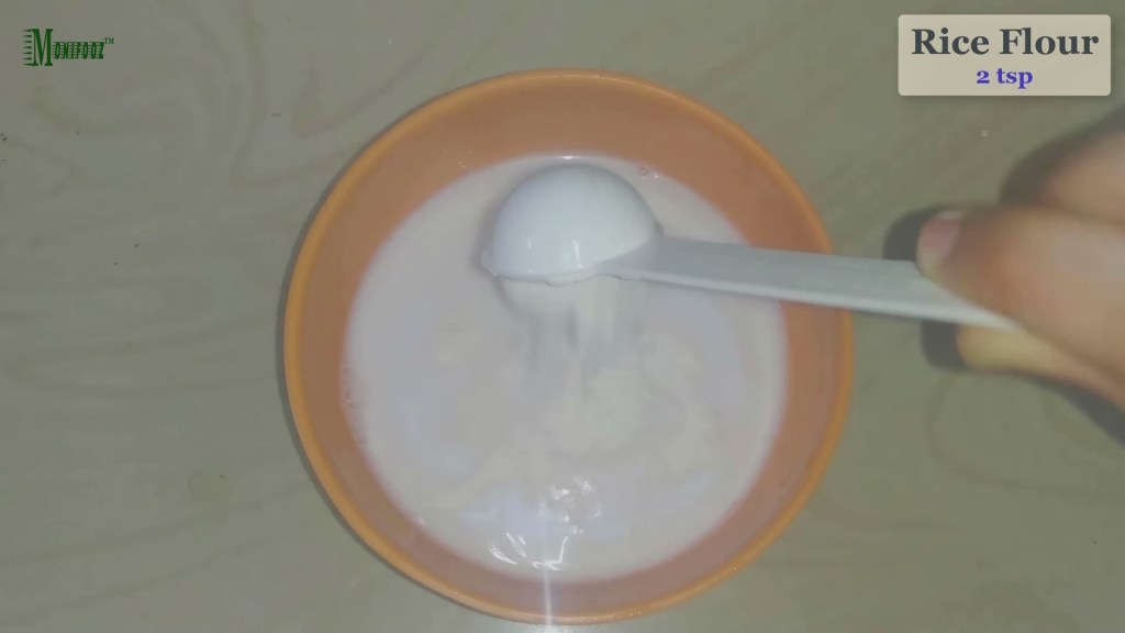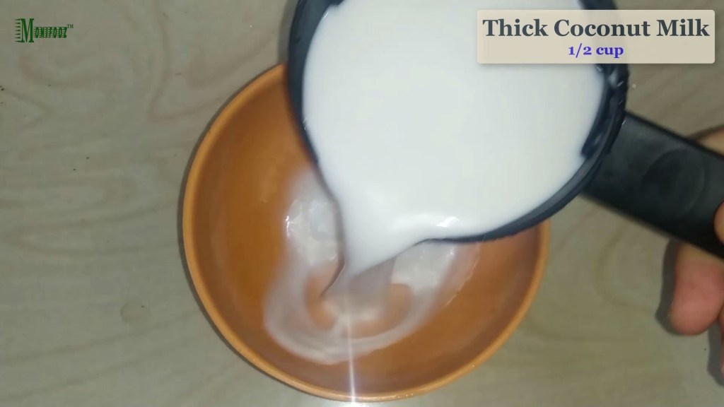 Take 1/2 cup of thick coconut milk in a bowl. Add 2 tsp of rice flour. Mix it well to make a dissolved mixture without lumps. Keep it aside.