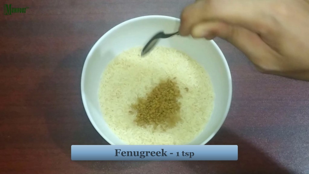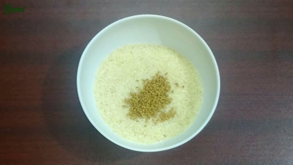Take 1 cup of rice and add 1 tsp of fenugreek into it. I take parboiled rice. You can take any rice. Wash that and keep it aside.
