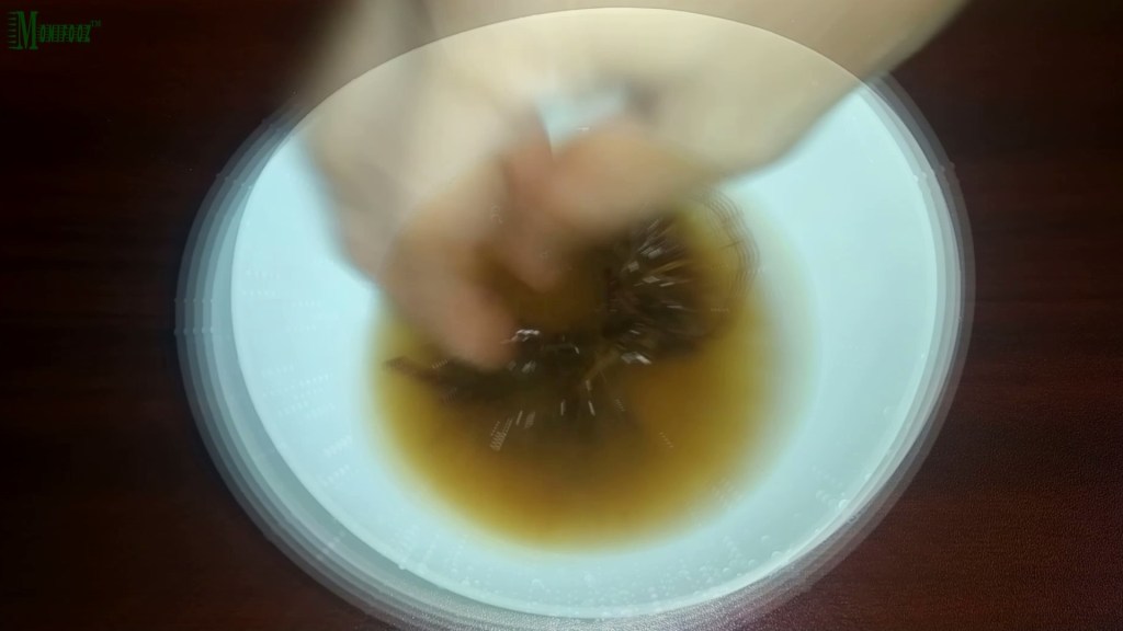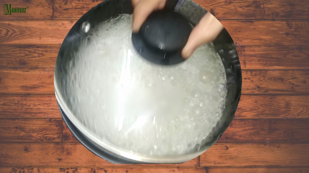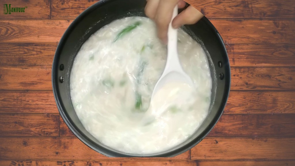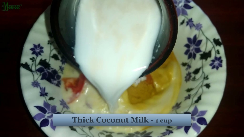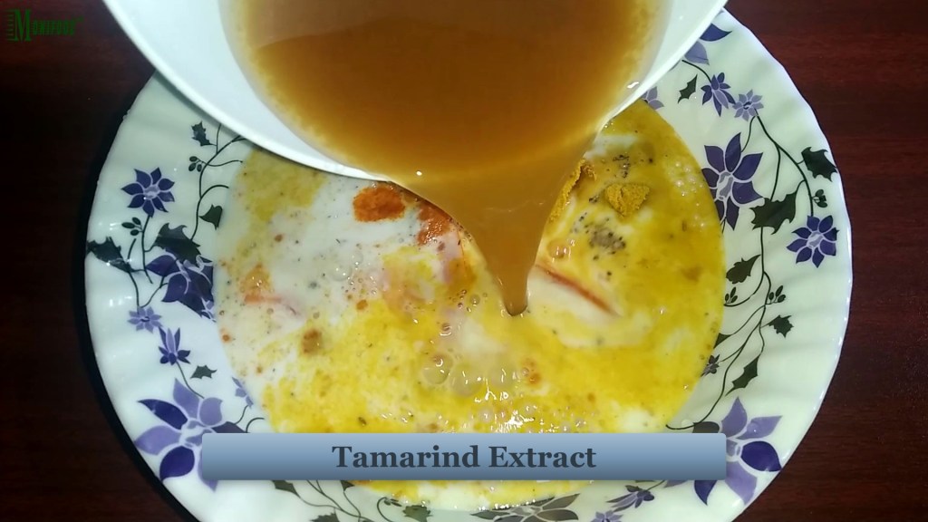 Pour 1 cup of thick coconut milk with prepared tamarind extract and preferred level of crystal salt. Mix it well to get a dissolved mixture, and you’re ready for the next step.