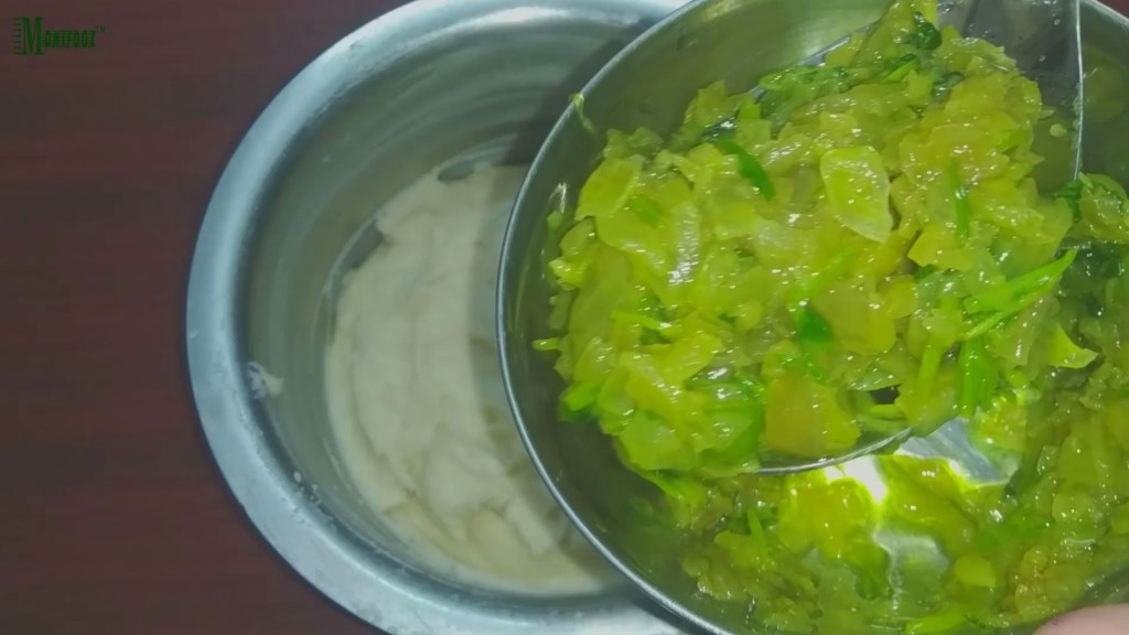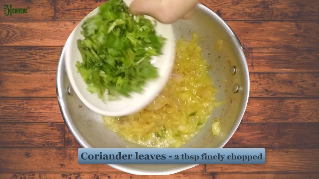 Add 2 tbsp of finely chopped coriander leaves and mix well. Add this onion masala into the batter just before making rice pancake. Please do not combine it earlier. Add little water to adjust the consistency as well if needed. Now the consistency must sound like an idly batter. You’re ready to go for making rice pancakes.