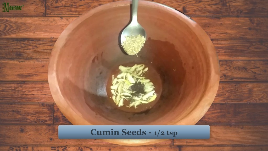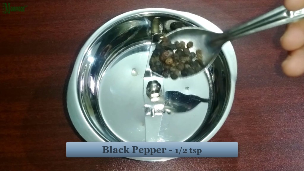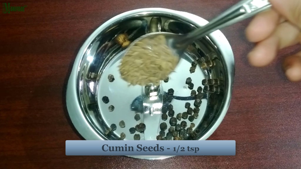 Take 1/2 tsp of black pepper, 1/2 tsp of cumin seeds in a mixie jar, and grind it coarsely. Keep this powder alike aside.