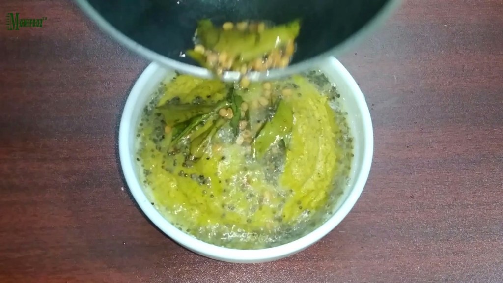 Once cooled down, take a mixie jar and put all the stuff into it. Grind it and add the tempered mixture of mustard, urad dhal, and curry leaves into it. Mix well, and now the tomato mint chutney is ready for serving!. It goes well for dosa or idly. Enjoy it with your family.