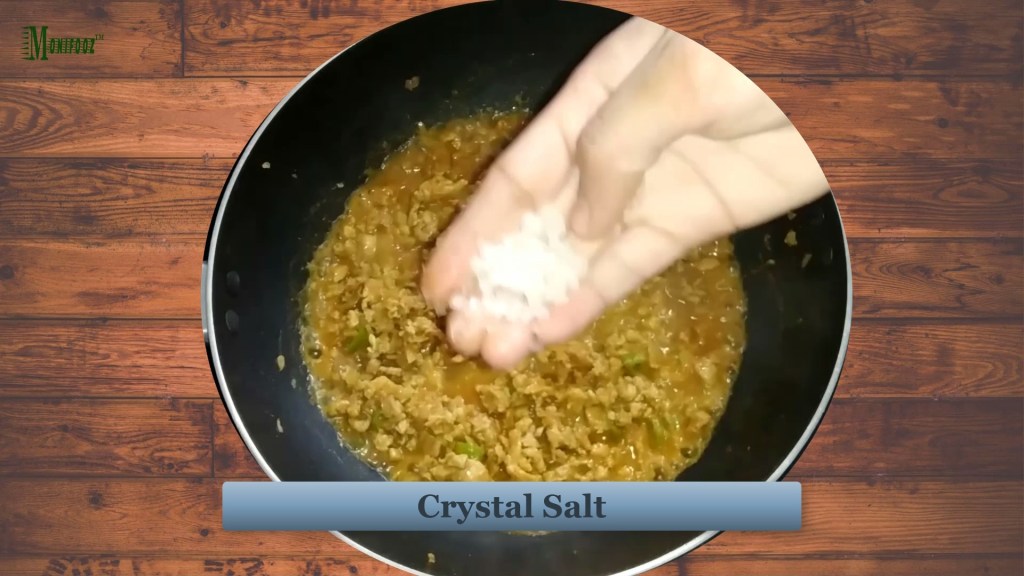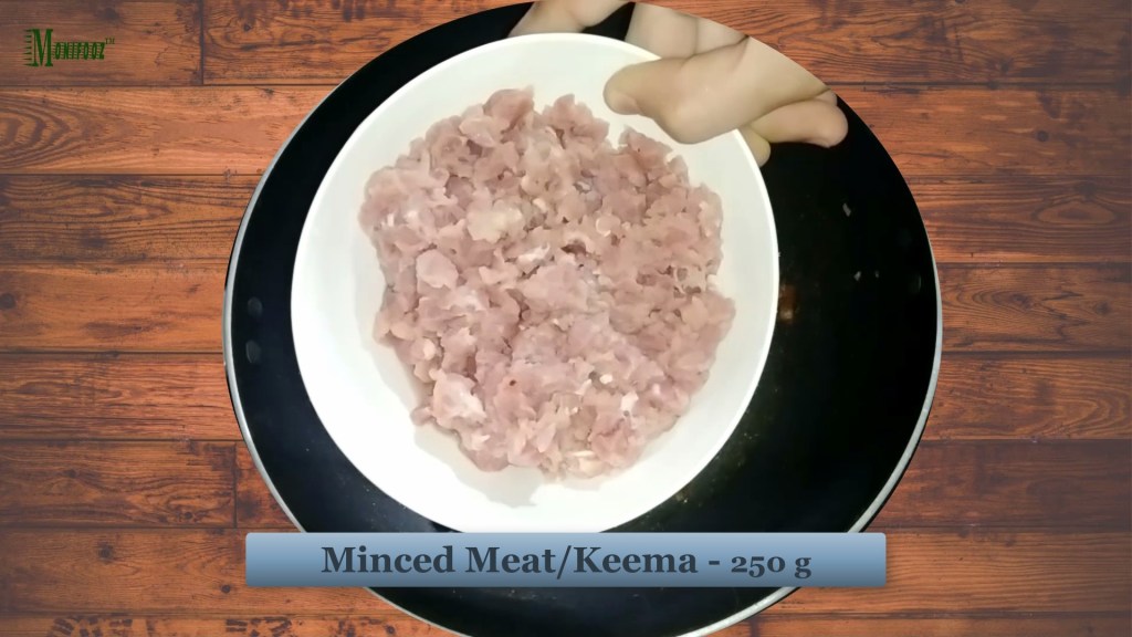 Add 250g of minced meat, otherwise called keema, into it. Keep stirring with high heat for 5 minutes. Add crystal salt as per your preference, 1 tbsp of ginger garlic paste, and mix well.