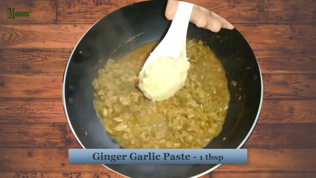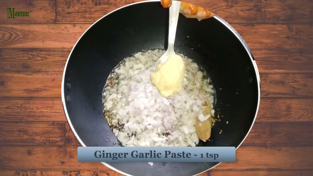 Put two medium-sized finely chopped onions, 1 tsp of ginger garlic paste, and fry it till the raw smell goes out.