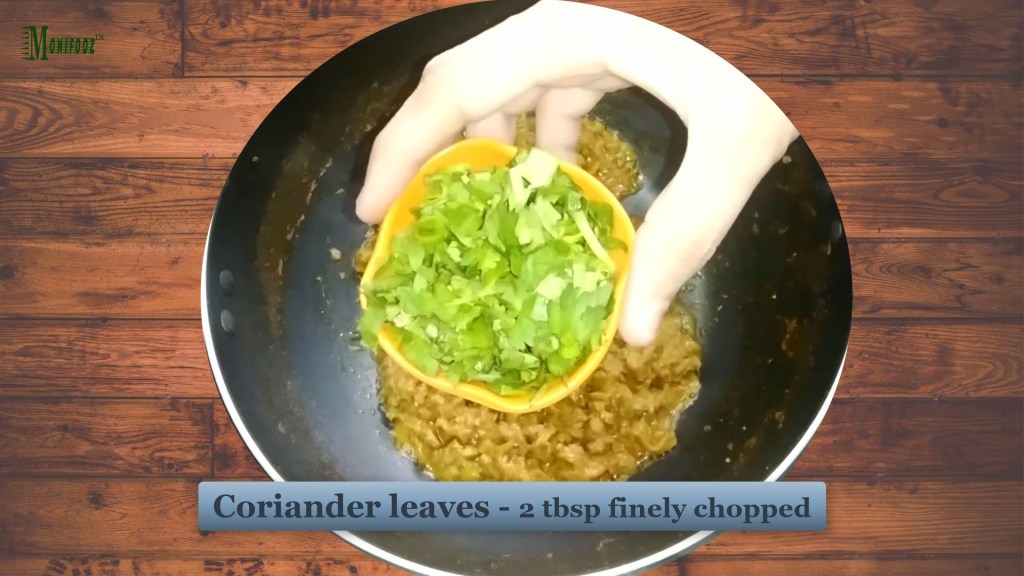 Pour 1 cup of water. Now reduce the flame to low heat. Cover with lid and cook for 20 to 25 minutes. Finally, add 2 tbsp of coriander leaves and mix well. Turn off the flame and keep the keema mixture aside.