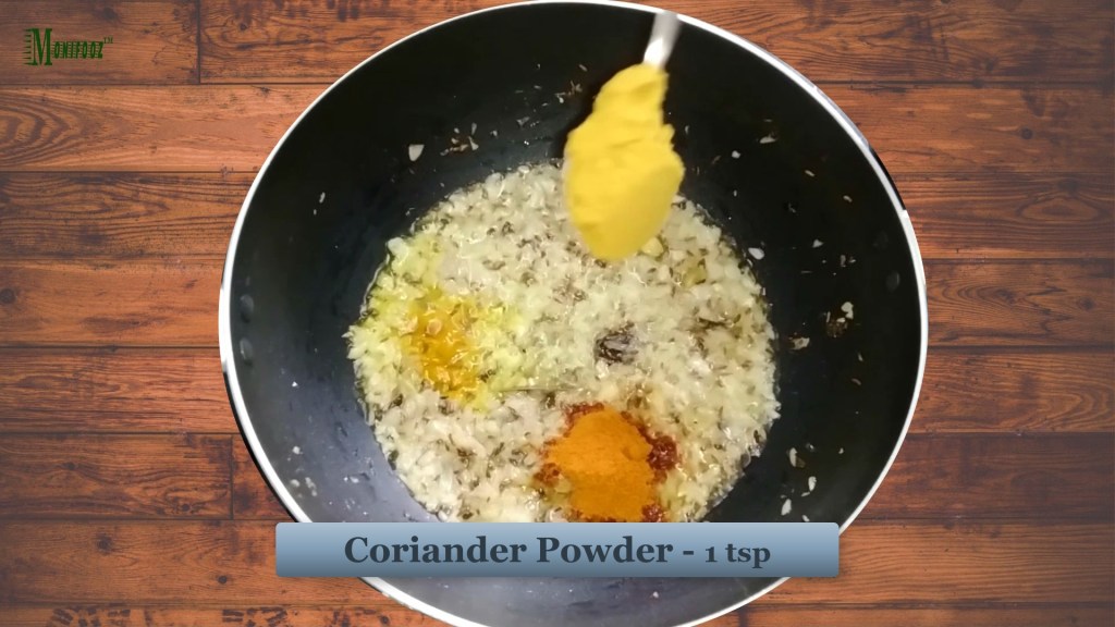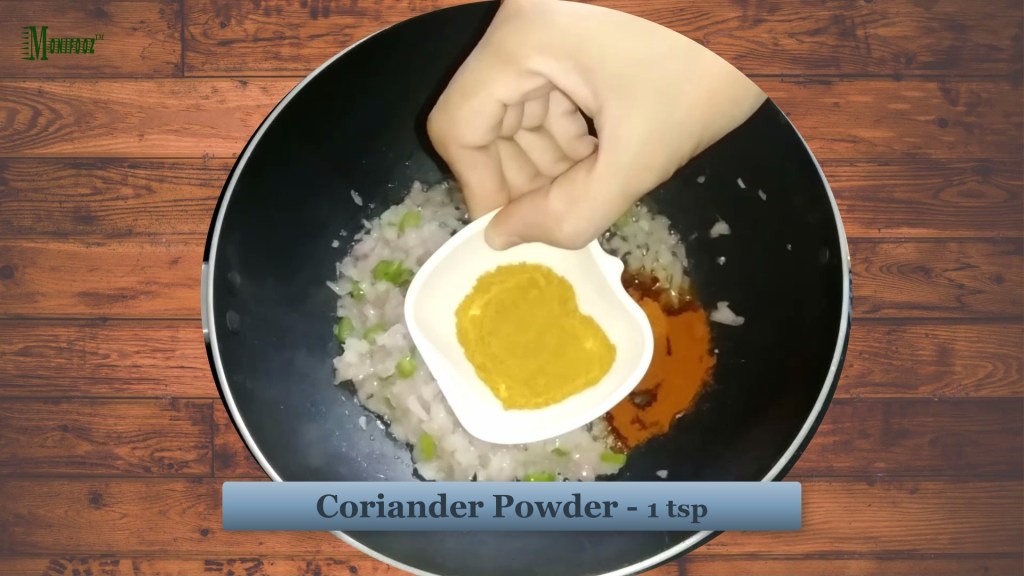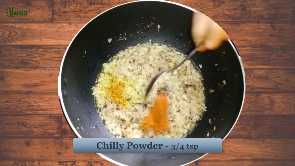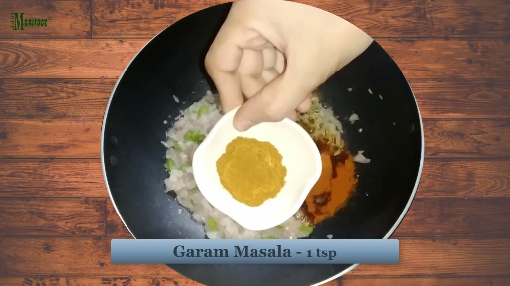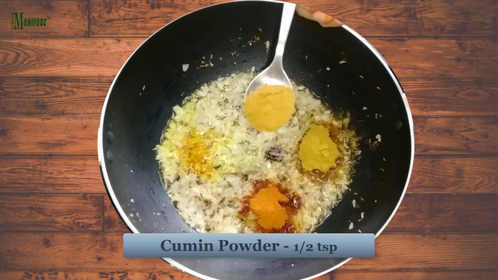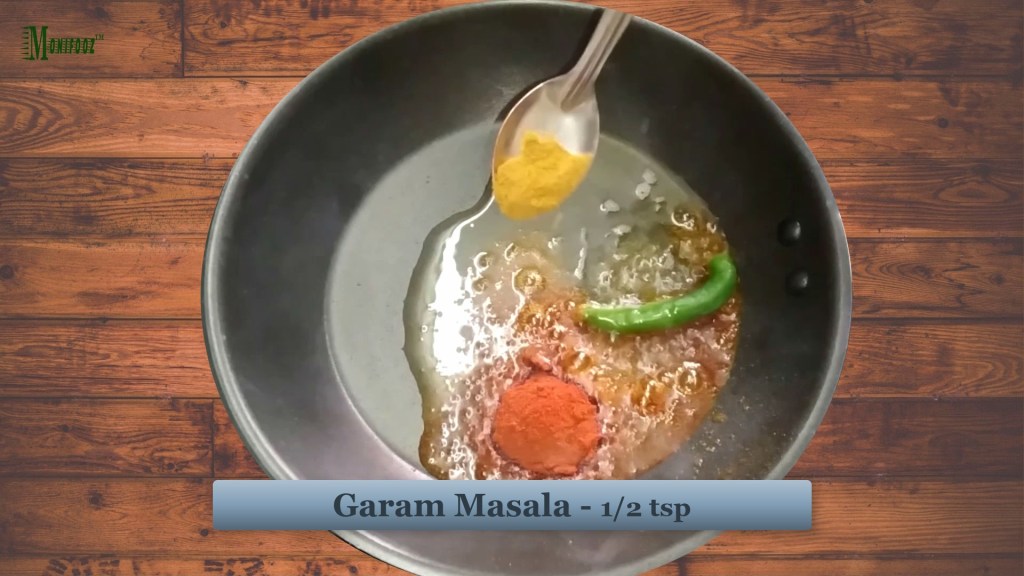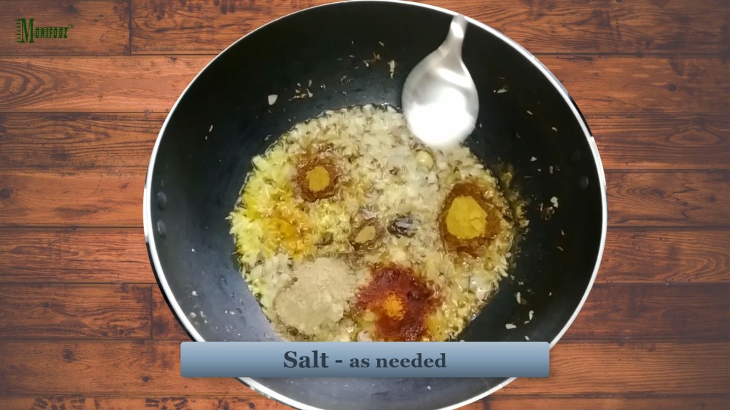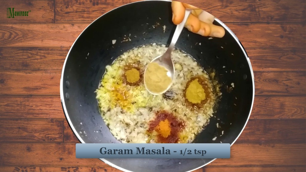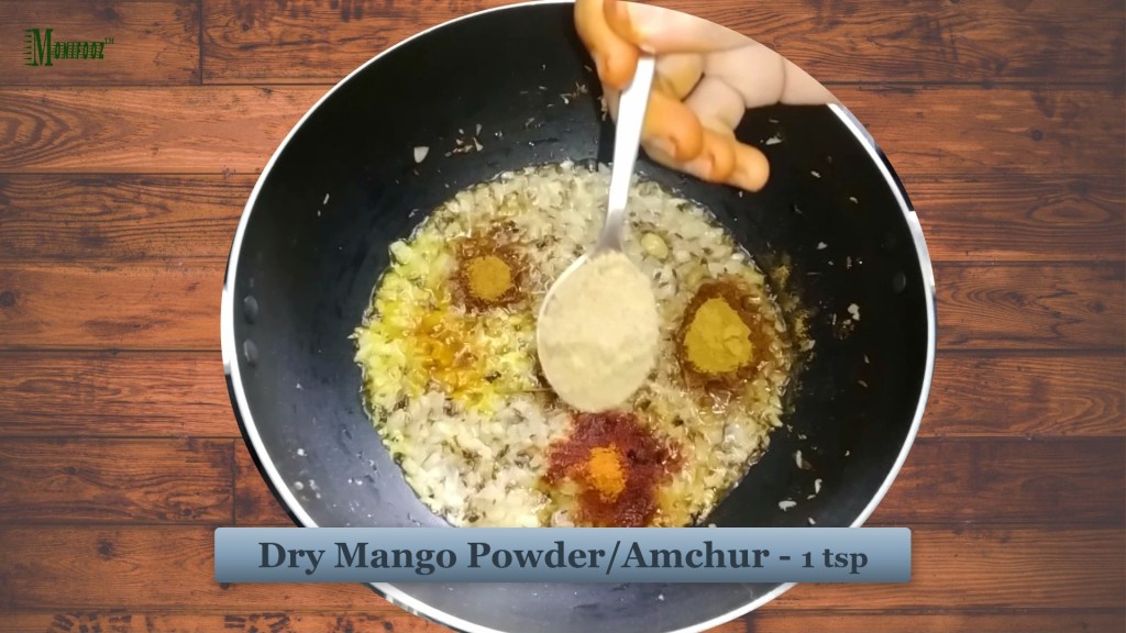 Add 1/4 tsp of turmeric powder, 3/4 tsp of chilly powder, 1 tsp of coriander powder, 1/2 tsp of cumin powder, 1/2 tsp of garam masala, 1 tsp of amchur/dry mango powder, preferred salt, and mix it well.