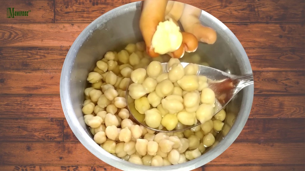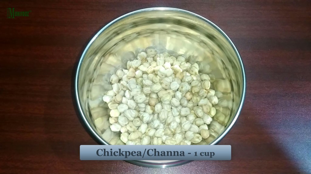 Take a bowl and add 1 cup of chickpea, otherwise called channa. Wash well and soak it in water for at least 6-7 hours or overnight. Get a cooker and put the soaked chickpeas into it along with 2.5 cups of water. Add some salt as per your preference. Cook it for 6-7 whistles with medium heat. Now, you’ve made the pre-prepared chickpea for a later process.