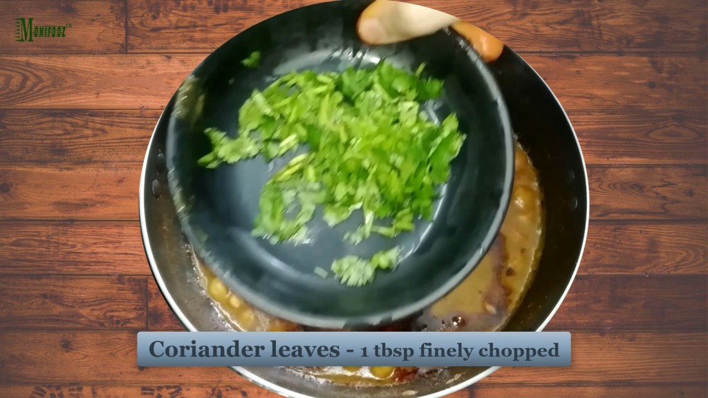 Finally, add this tempering to the gravy along with 1 tbsp of finely chopped coriander leaves. Now, channa masala is ready for serving!