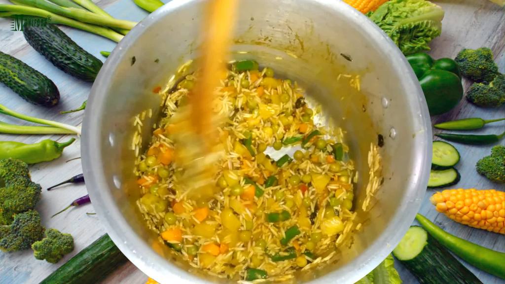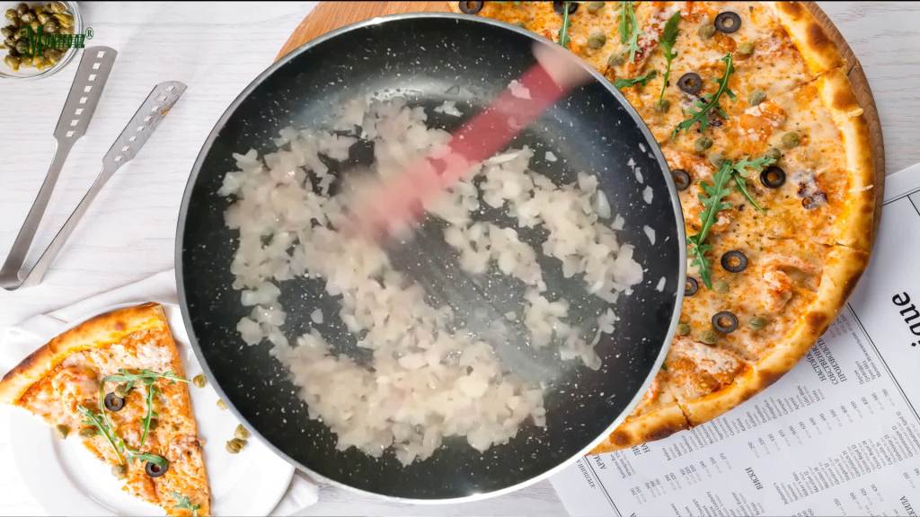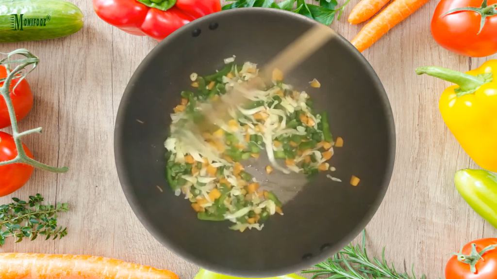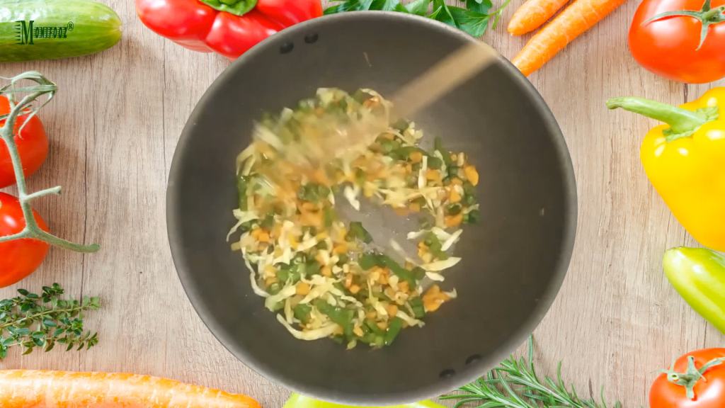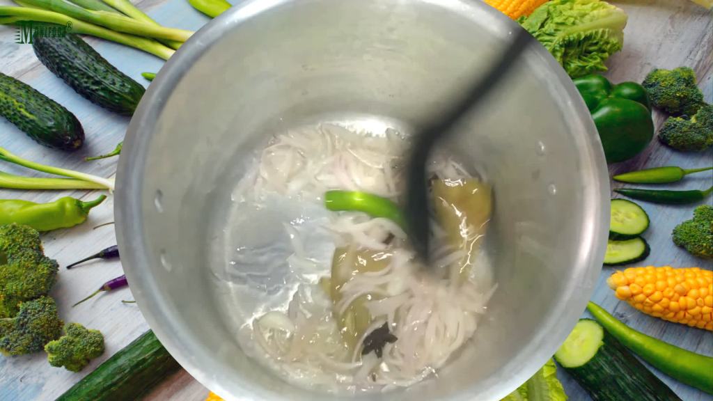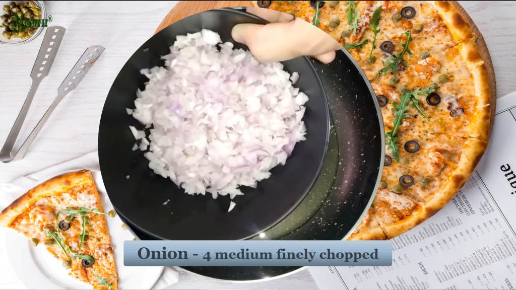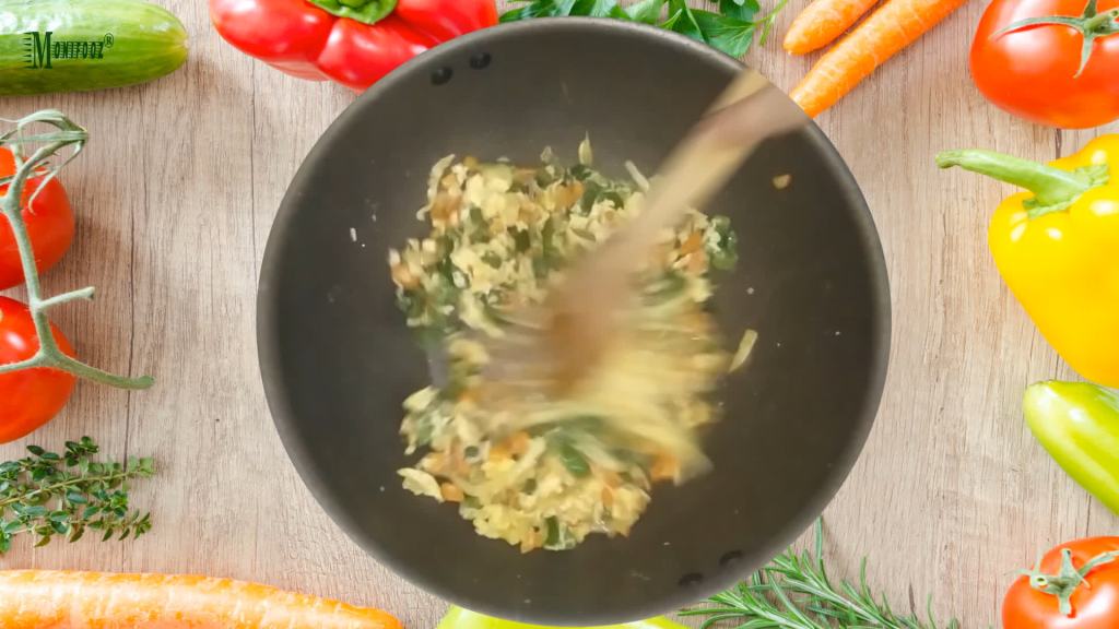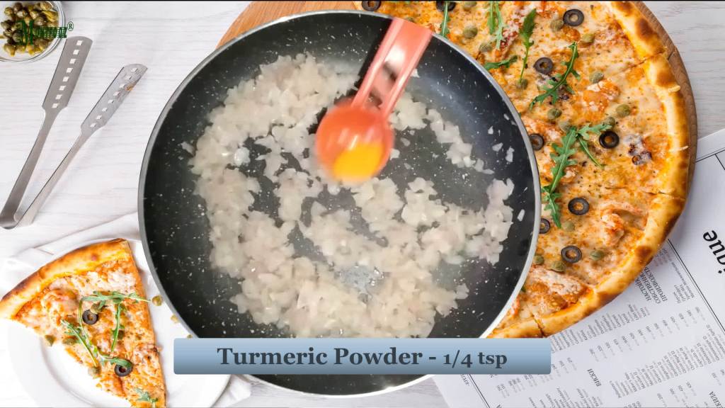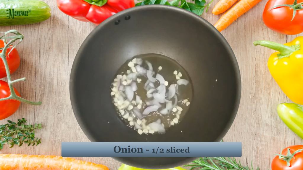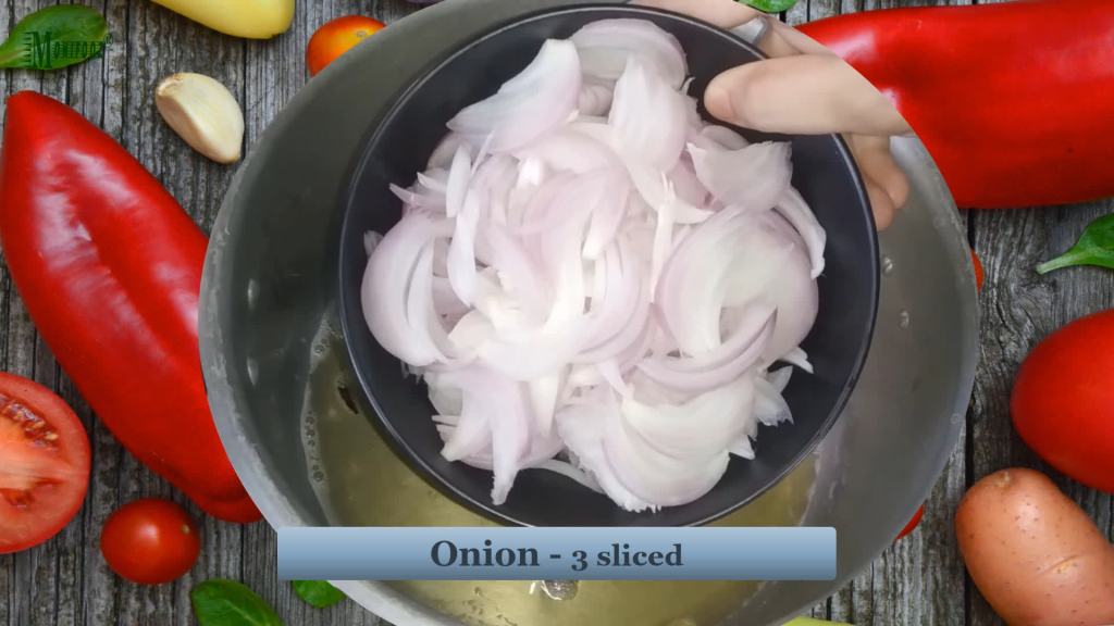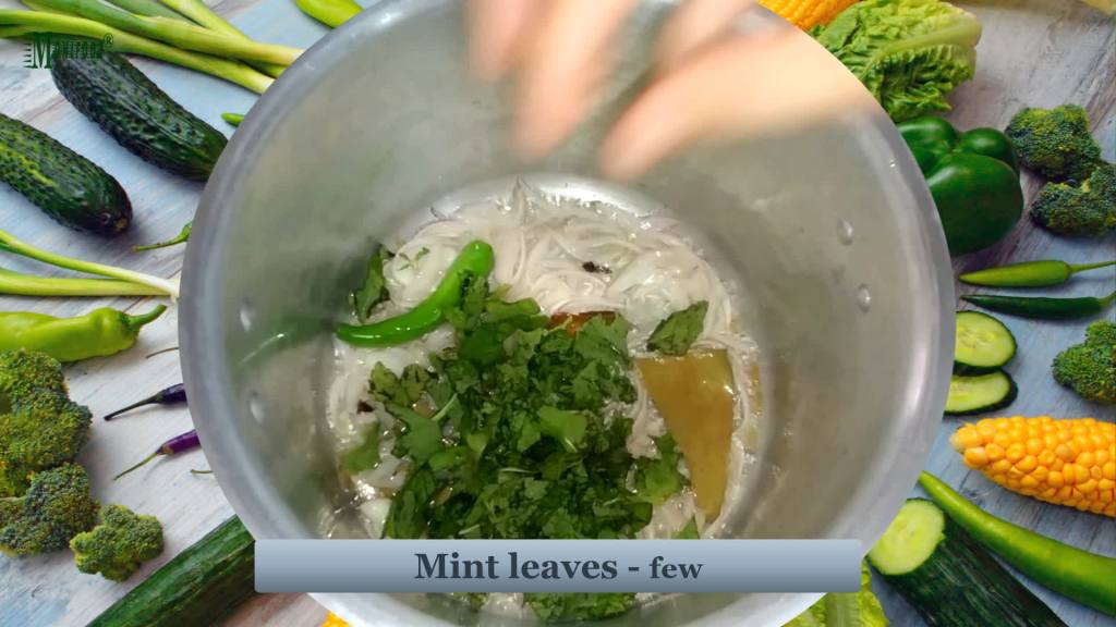 Add one cinnamon, 1/2 tsp of cumin seeds, and fry till it turns aromatic. Add two finely chopped onions and saute it for 2-3 minutes.