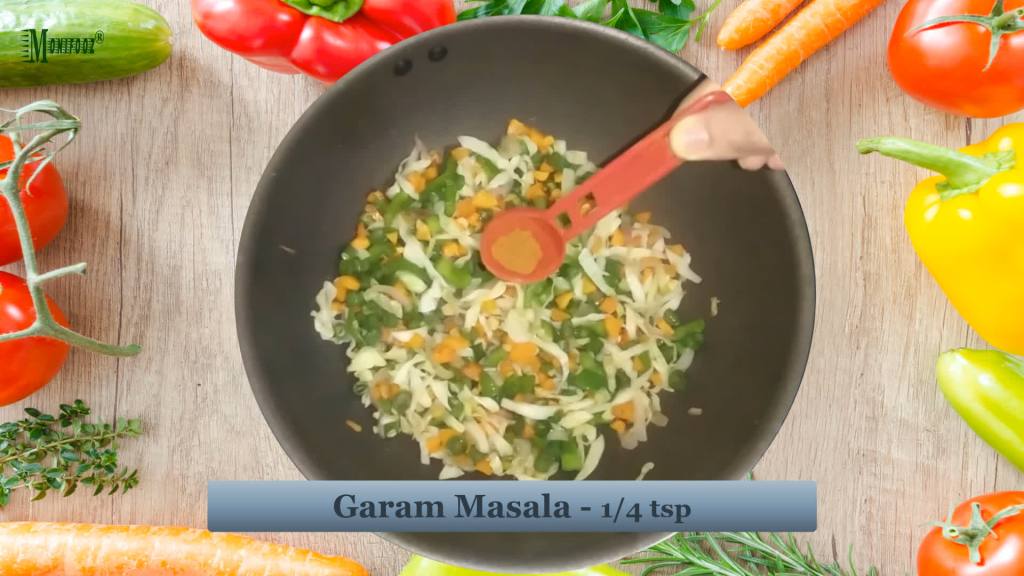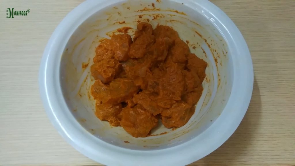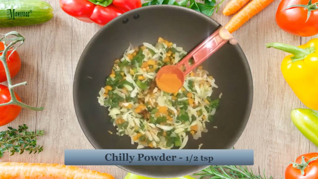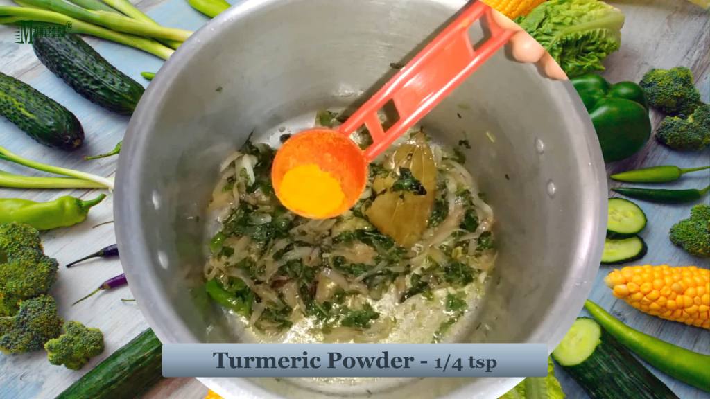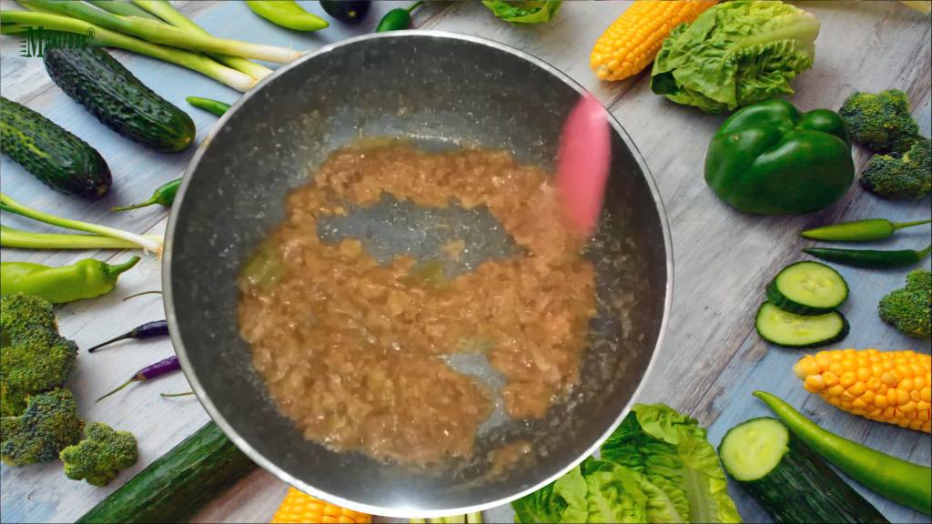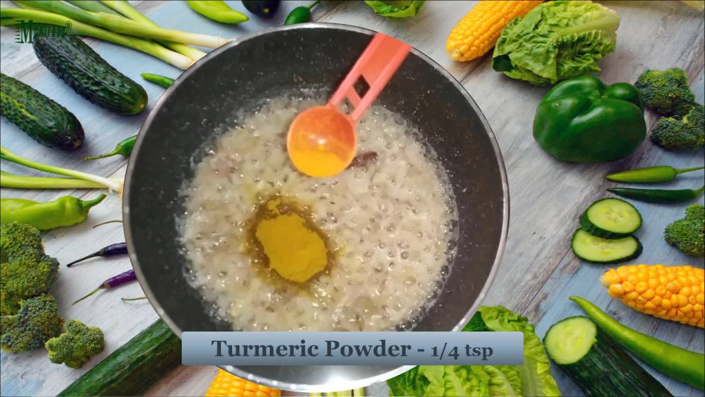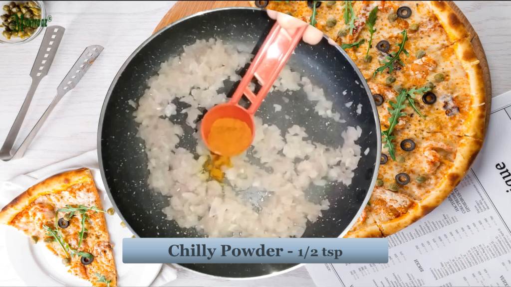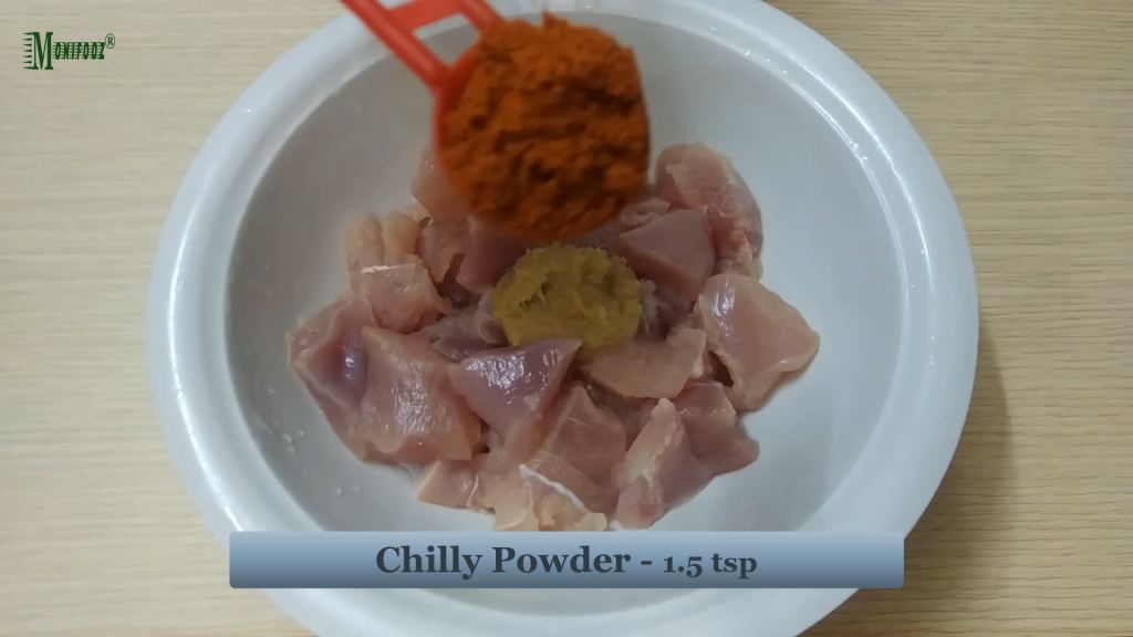 Add 1 tsp of ginger garlic paste, and fry it till the raw smell disappears. Put 1.5 tsp of coriander powder, 1/4 tsp of turmeric powder, and 1/2 tsp of chilly powder.