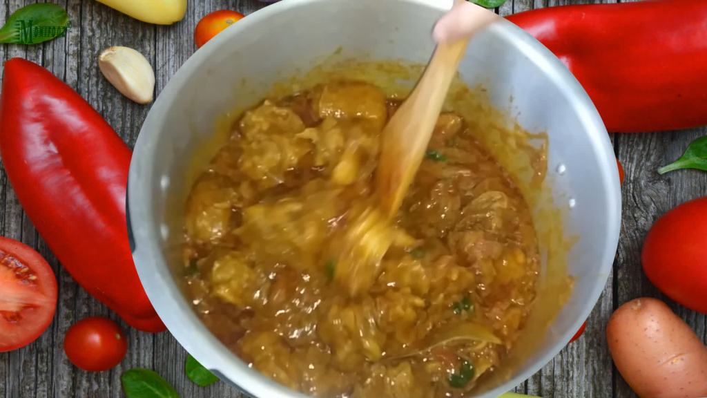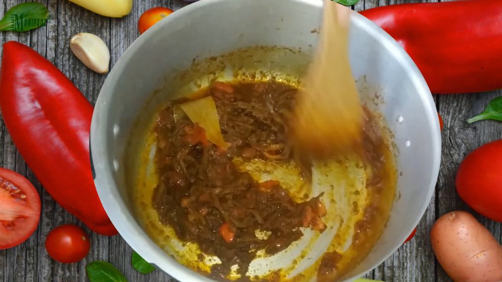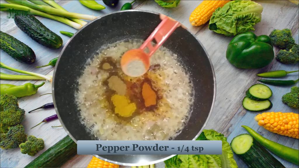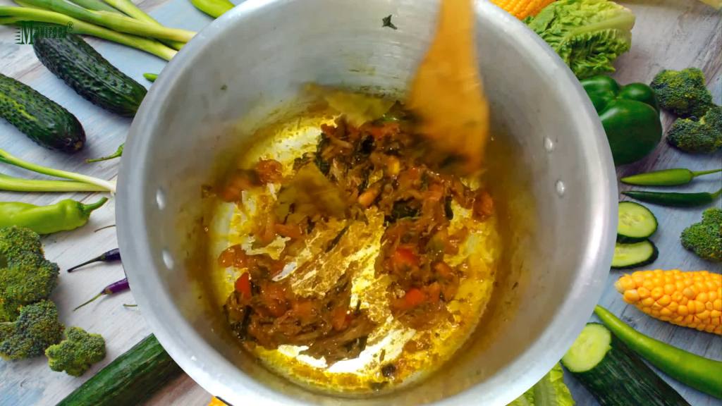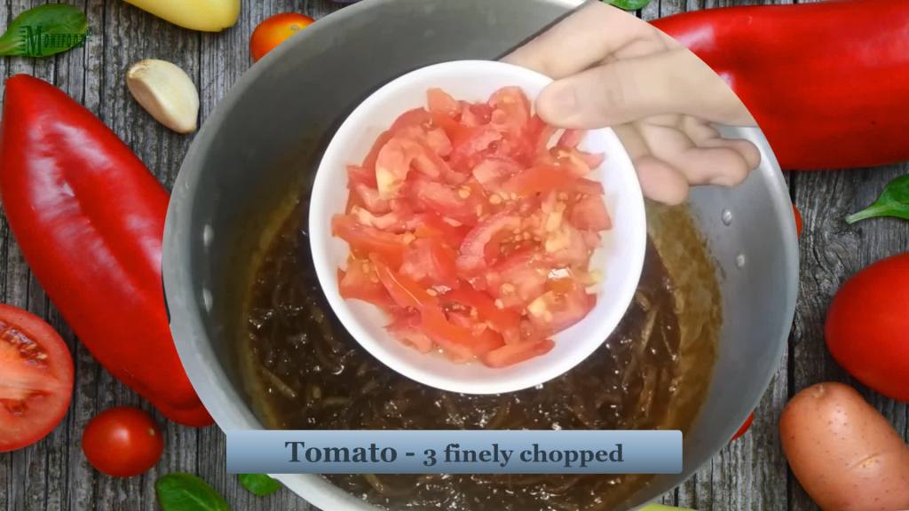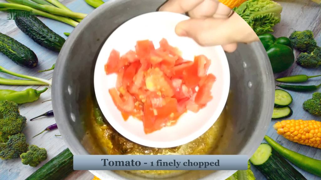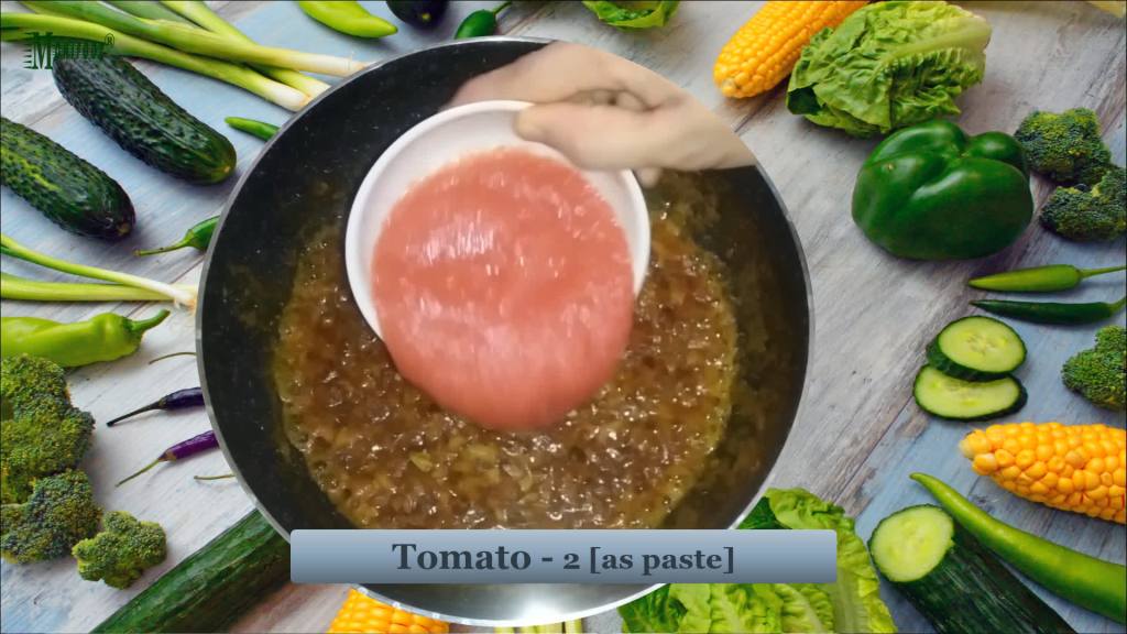Additionally, add 1/2 tsp of cumin powder, 1/4 tsp of pepper powder, and mix it for a minute. Add two tomatoes as paste and cook it until the raw smell disappears.