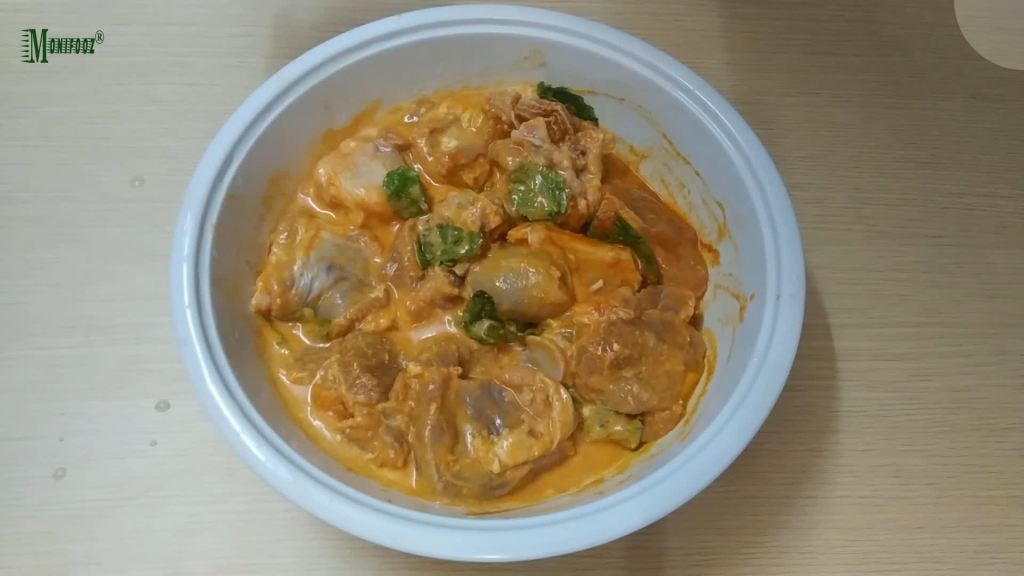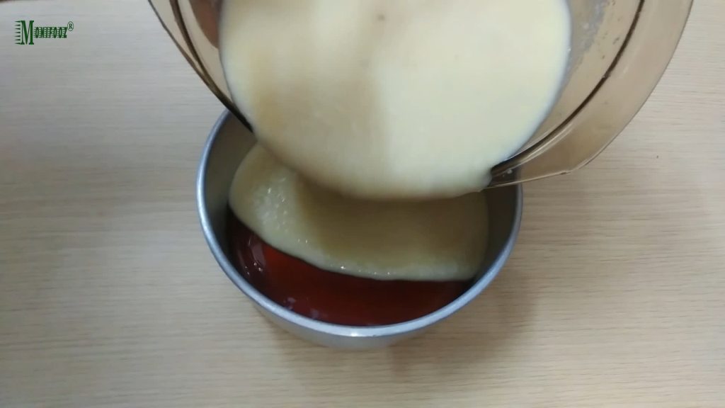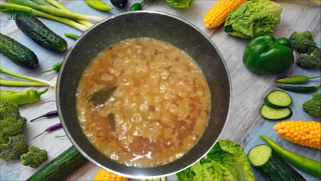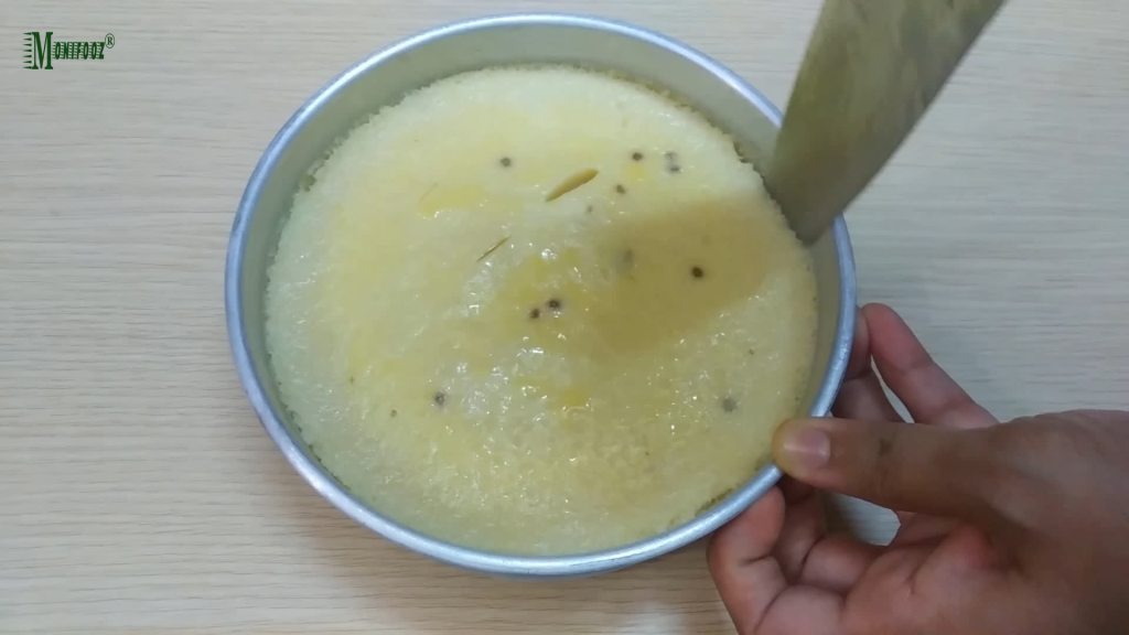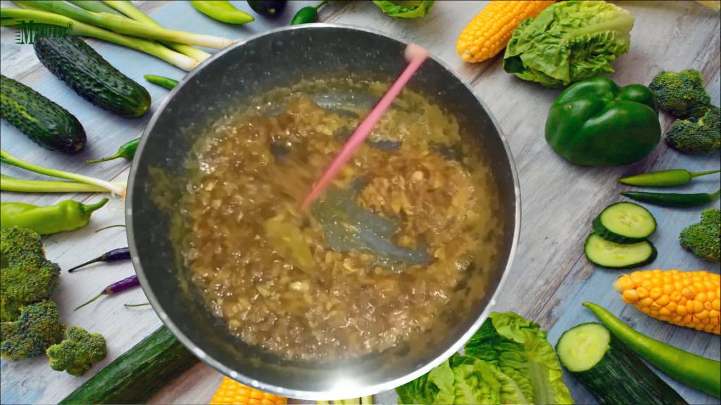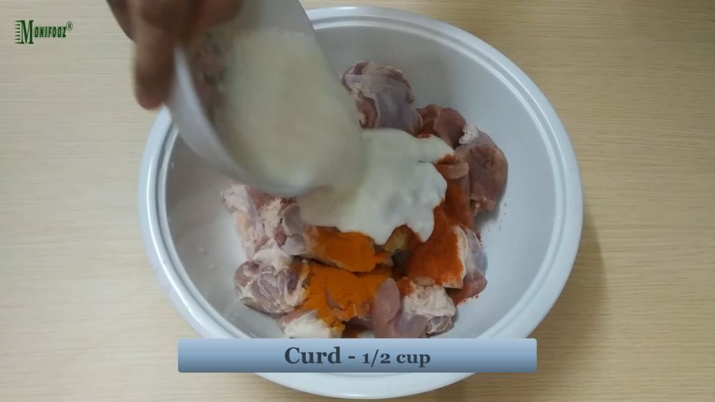 Pour 3 tbsp of whisked curd into it. Mix it well and cook till oil separates. Pour 1 cup of water and add the required salt needed for gravy. Mix it and let it boil.