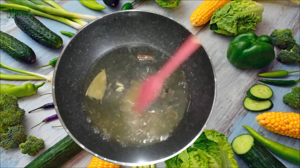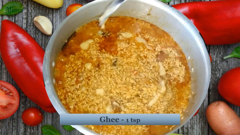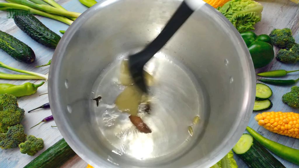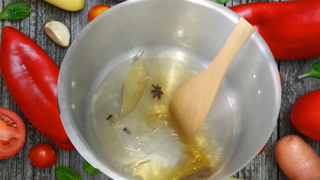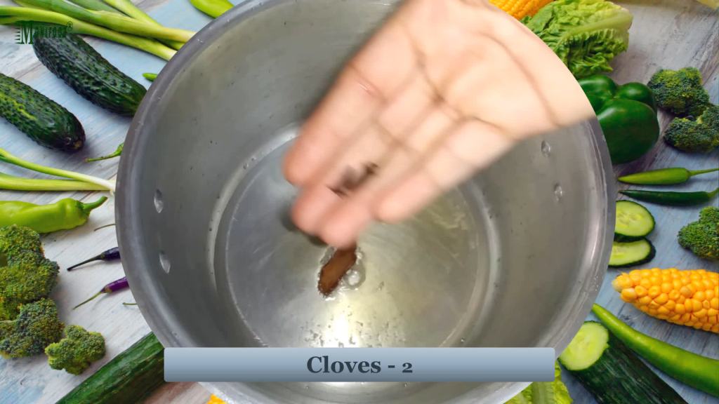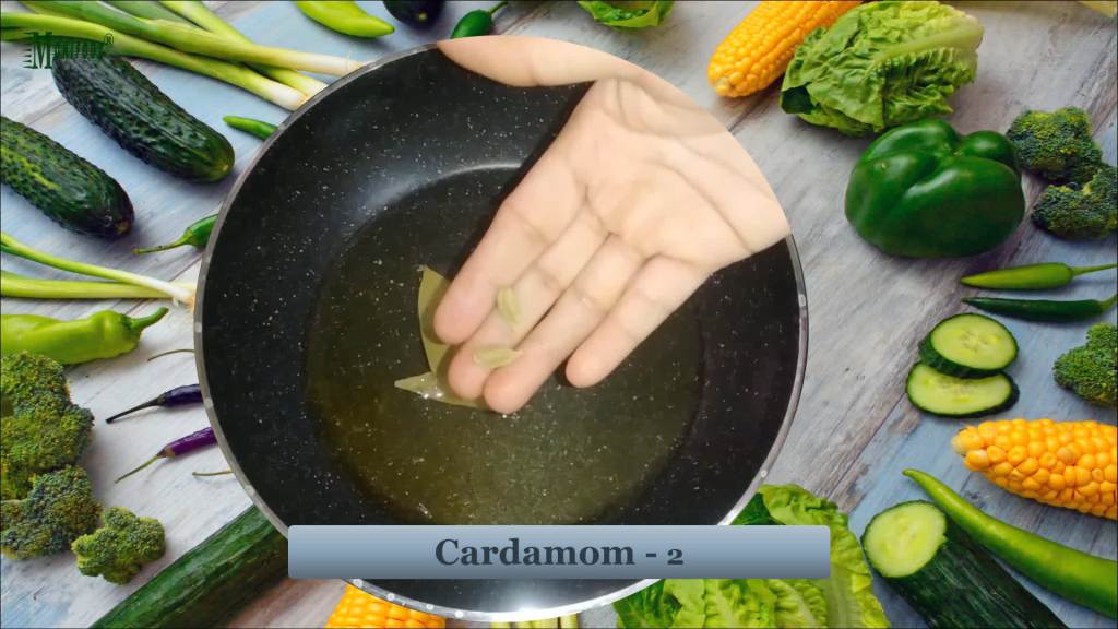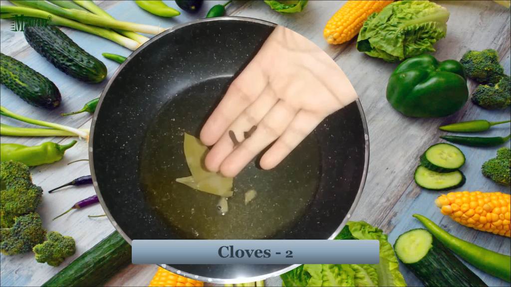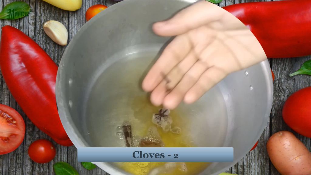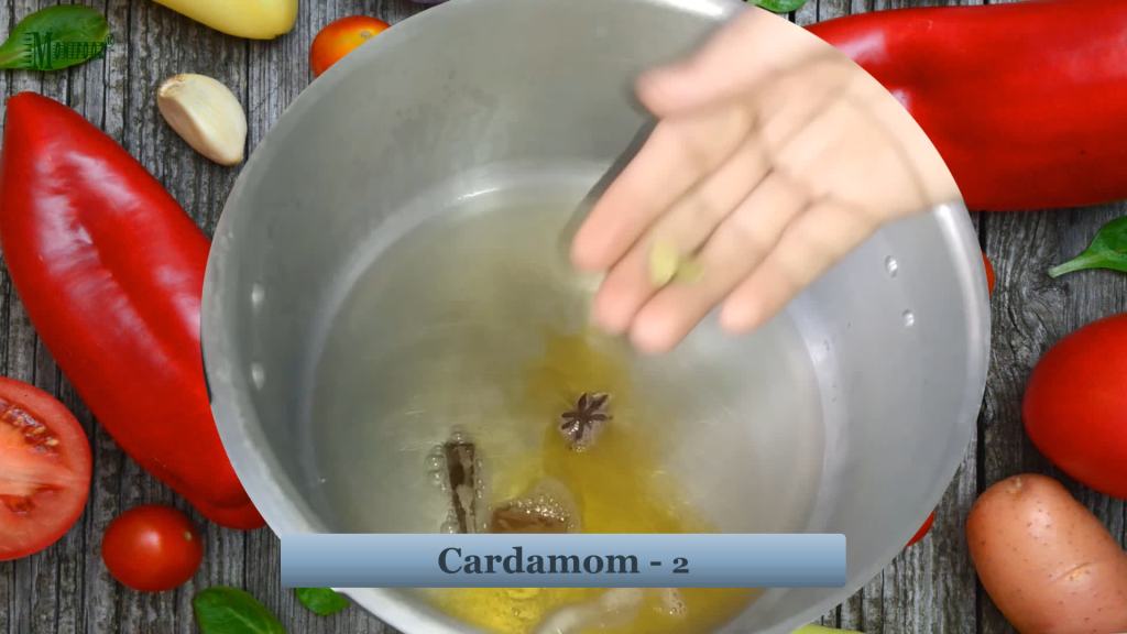 Take a pan and heat it with medium heat. Add 1 tsp of ghee, 2 tbsp of oil, one bay leaf, two cardamoms, and two cloves into it.
